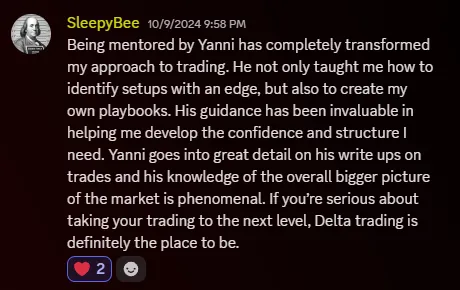 My name is Yanni. I trained and traded at SMB Capital, one of the top prop trading firms on Wall Street, for four years, where I learned how to trade like a professional—not a retail gambler. My strategy is built on real market edge and setups that 8 figure traders were using. Not on indicators or random setups. I’ve consistently traded through different market cycles, refining my execution and risk management to maximize profitability. Beyond my own success, I’ve mentored traders to develop structured processes, eliminate bad habits, and execute with confidence. This mentorship is about teaching you a real, repeatable system used by top traders so you can trade with clarity, precision, and consistency.